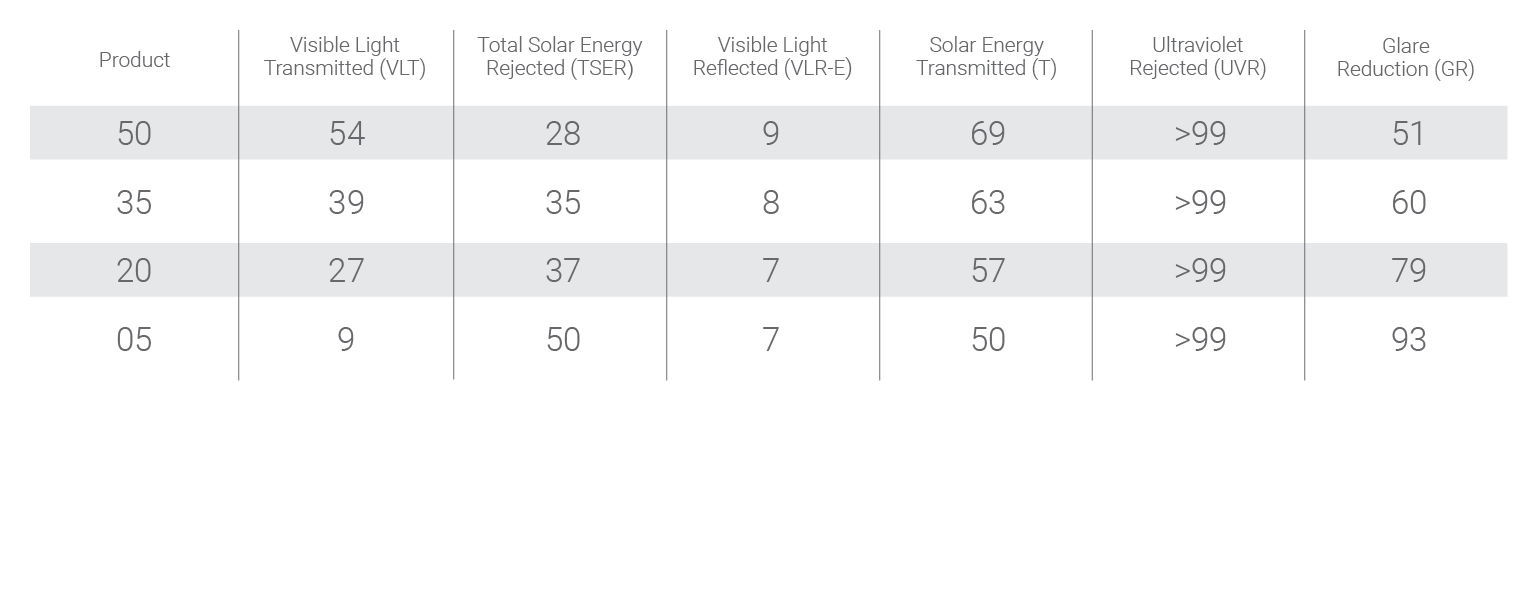 Description The Firebird Films are all single Ply, Metal Free in Charcoal color in Percentages from 5% to 50%.