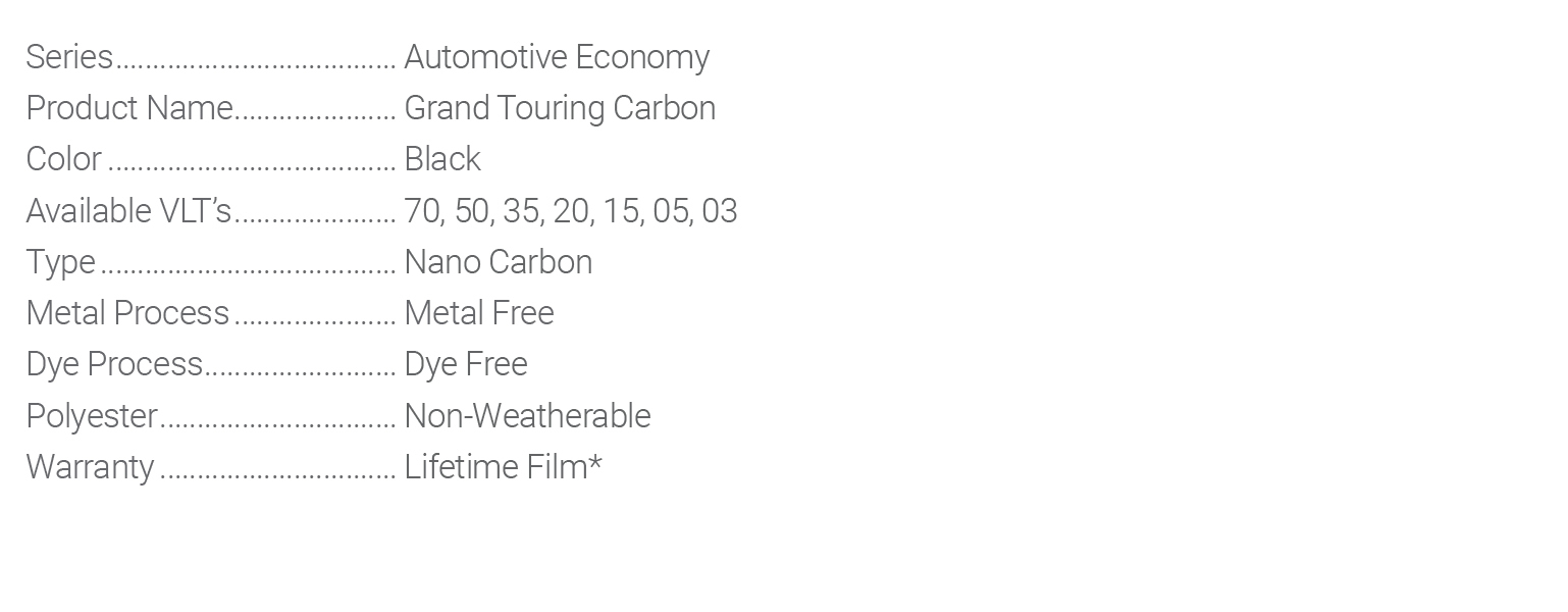 If you are looking for infrared rejection at an introductory price level, this is the product for you. Grand Touring is made with the latest and most advanced Carbon Nano-Ceramic technology that provides higher heat rejection with no interference on electronic signals.